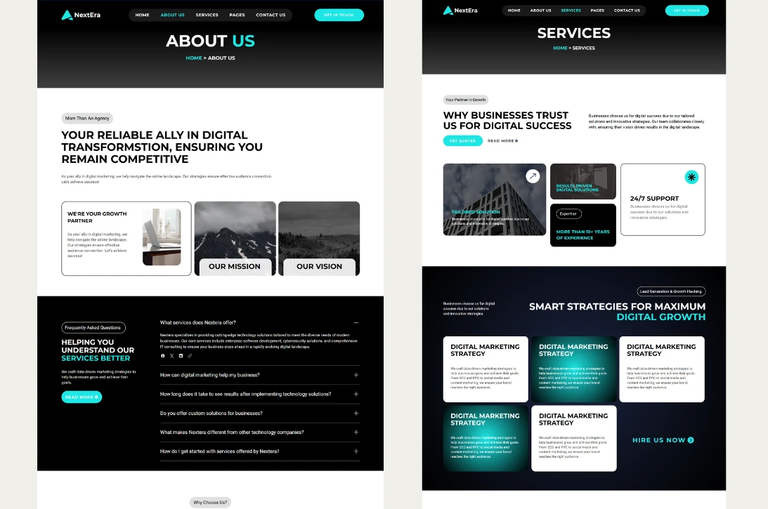 Every section is carefully designed for services, case studies, testimonials, blogs, and more – created to build client trust.