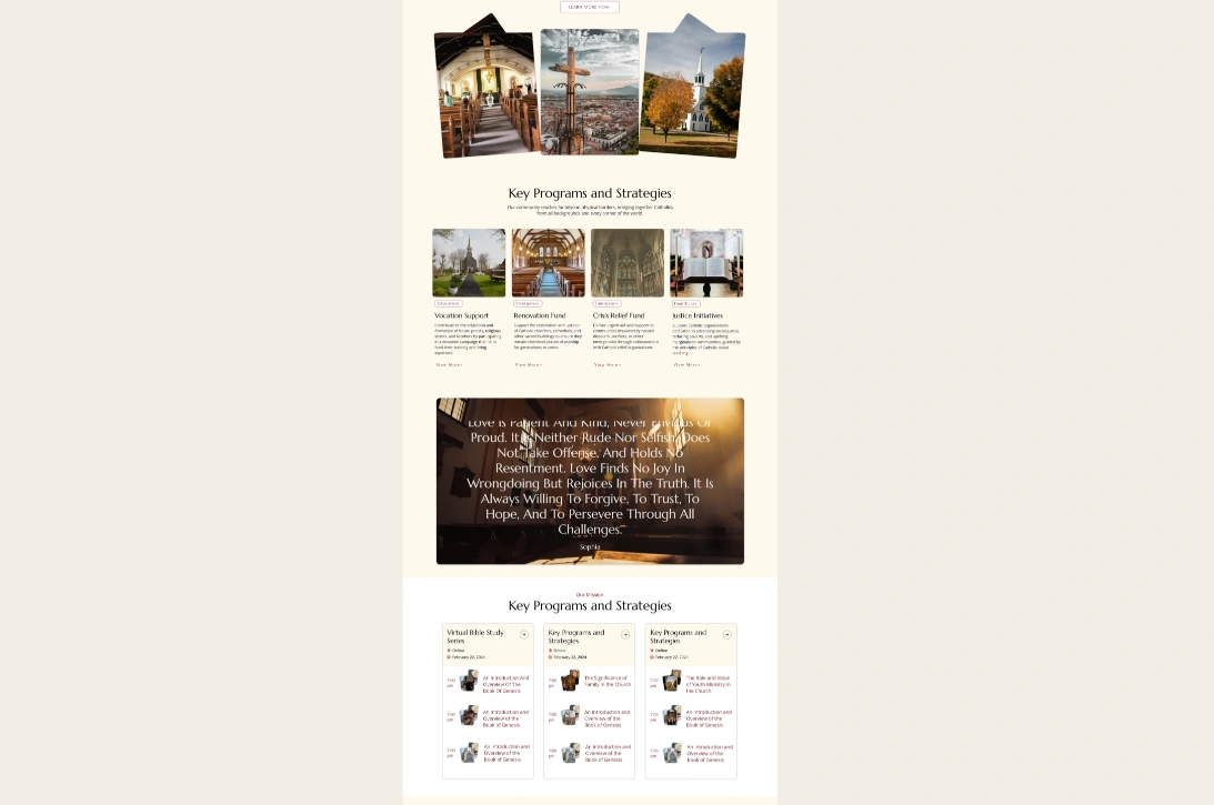 Each section is designed for sermons, prayer requests, events, and donations. It helps you connect with your congregation.