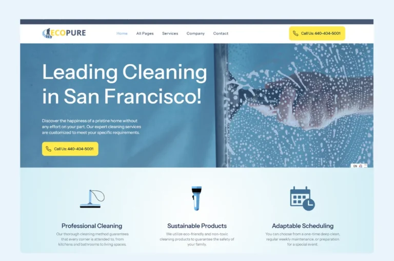 The Ecopure Cleaning Wix Template is built for professional cleaning companies, home service providers, and commercial cleaners. With its modern and trustworthy design, it highlights services, eco-friendly practices, and testimonials—helping you attract more local clients and grow your cleaning business online.